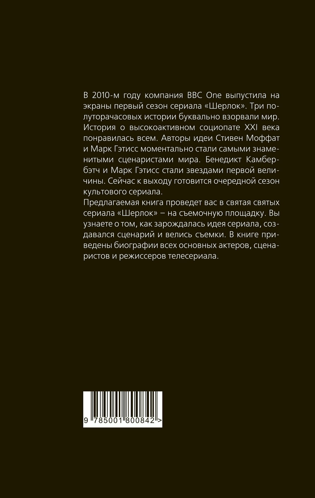 Предлагаемая книга проведет вас в святая святых сериала "Шерлок" - на съемочную площадку. Вы узнаете о том, как зарождалась идея сериала, создавался сценарий и велись съемки. В книге приведены биографии всех основных актеров, сценаристов и режиссеров телесериала.