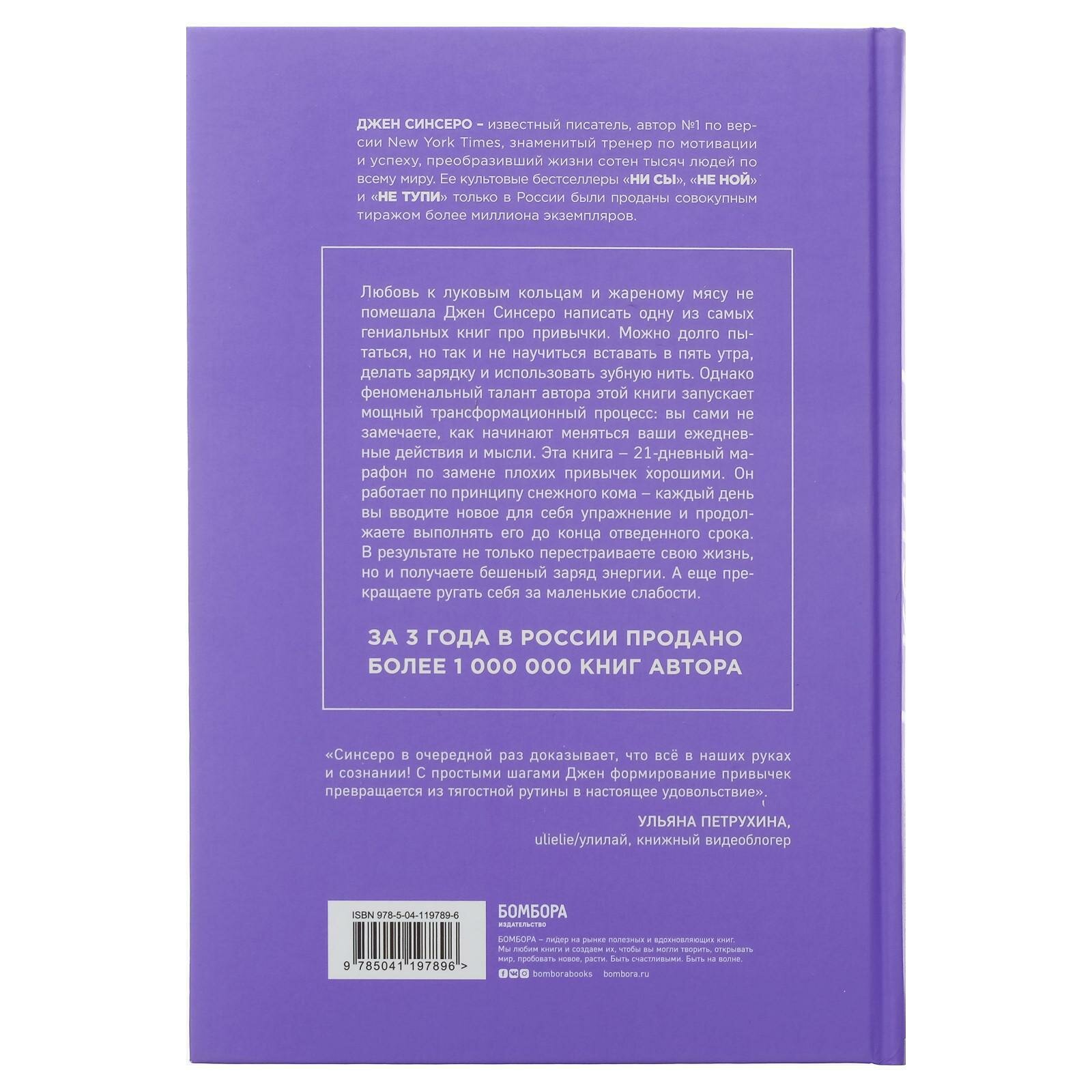 "Синсеро в очередной раз доказывает, что все в наших руках и сознании! С простыми шагами Джен формирование привычек превращается из тягостной рутины в настоящее удовольствие". - Ульяна Петрухина, Ulielie, книжный видеоблогер