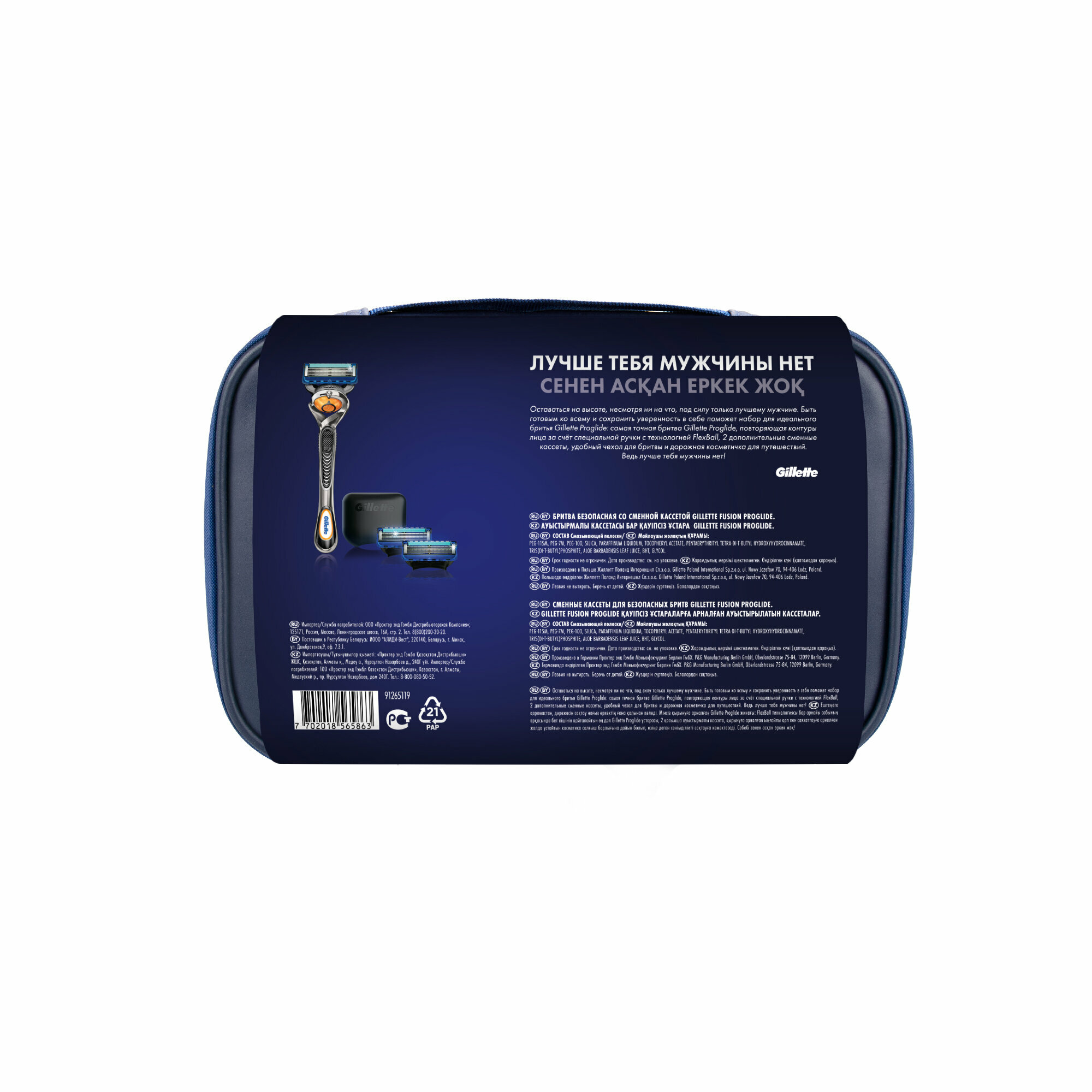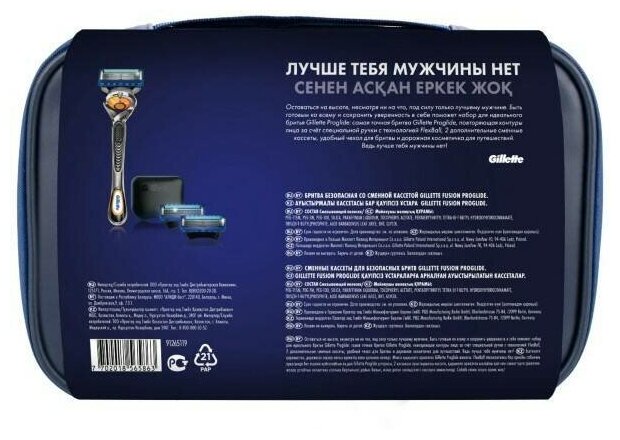 Оставаться на высоте, несмотря ни на что, под силу только лучшему мужчине. Быть готовым ко всему и сохранить уверенность в себе поможет набор для идеального бритья Gillette Proglide: самая точная бритва Gillette Proglide, повторяющая контуры лица за счет специальной ручки с технологией FlexBall, 2 дополнительные сменные кассеты, удобный чехол для бритвы и дорожная косметичка для путешествий.