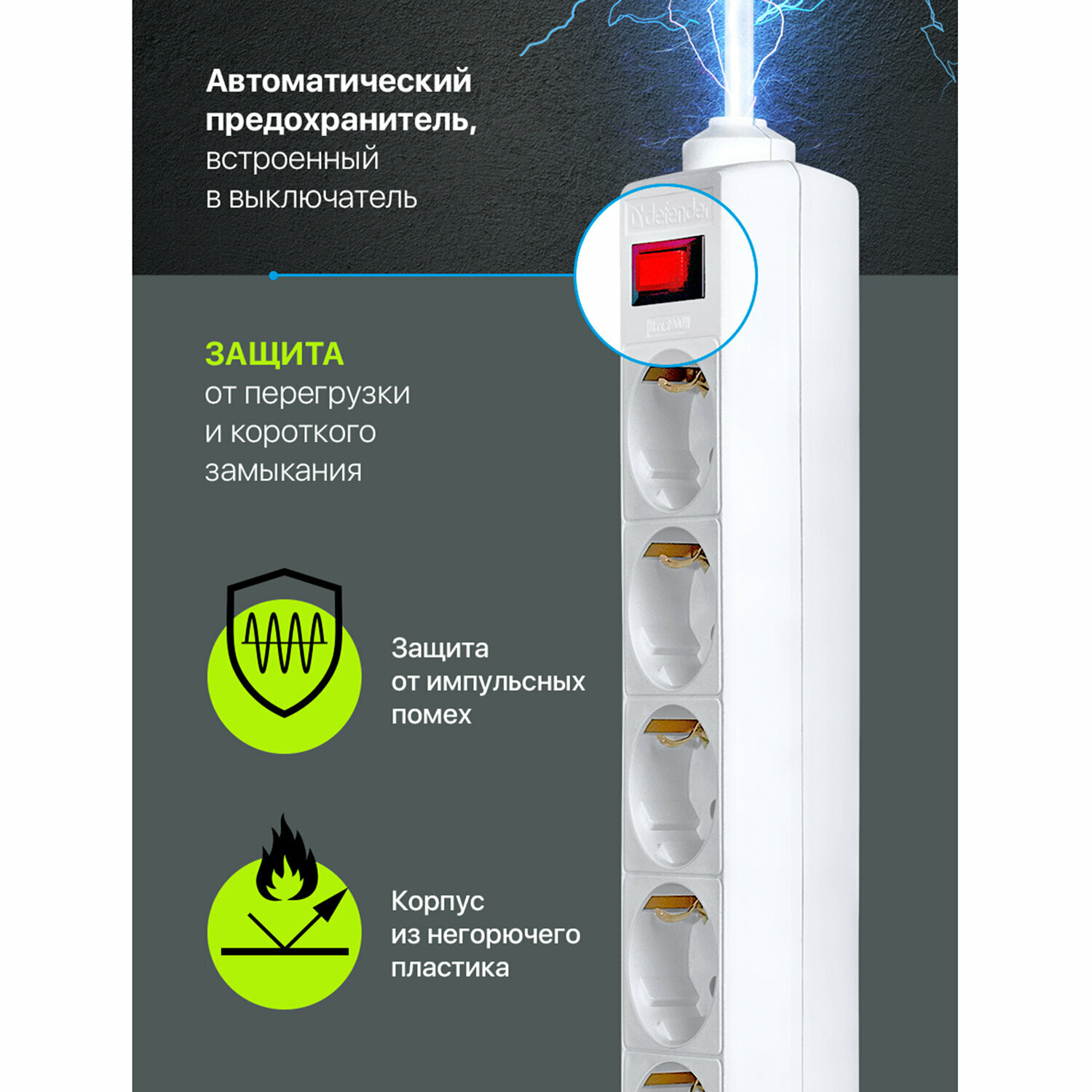 Преимущества сетевого фильтра Defender ES 1.8 5 Sockets 1.8m White
