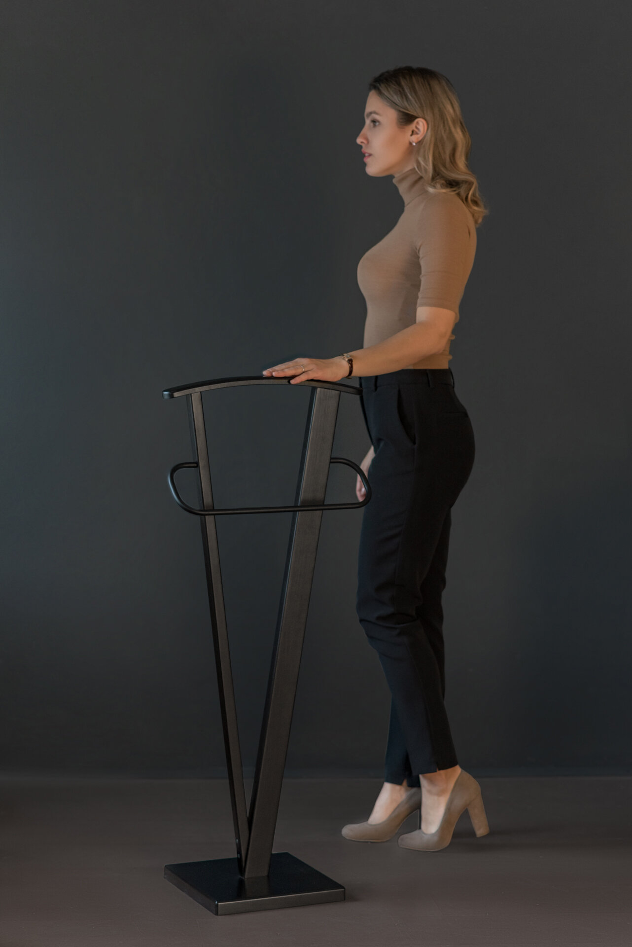 Модель костюмной вешалки Галант 344 в черном варианте исполнения предназначена для мужчин, поддерживающих порядок в спальне и возле рабочего места. Вешалка весьма лаконична, в ней нет лишних деталей, тем не менее, позволяет разместить на ней пиджак, сорочку и брюки. Перекладина для брюк достаточно широкая, и подходит для любых размеров одежды. Кроме того, при необходимости, через нее можно перекинуть галстук и ремень. Ассиметричная конструкция напоминающая латинскую букву V не приедается со временем, основание делает всю конструкцию устойчивой.Костюмная вешалка Галант станет отличным бизнес подарком коллеге по работе, любому мужчине. Практично, полезно, красиво, не скупо и не обременительно.