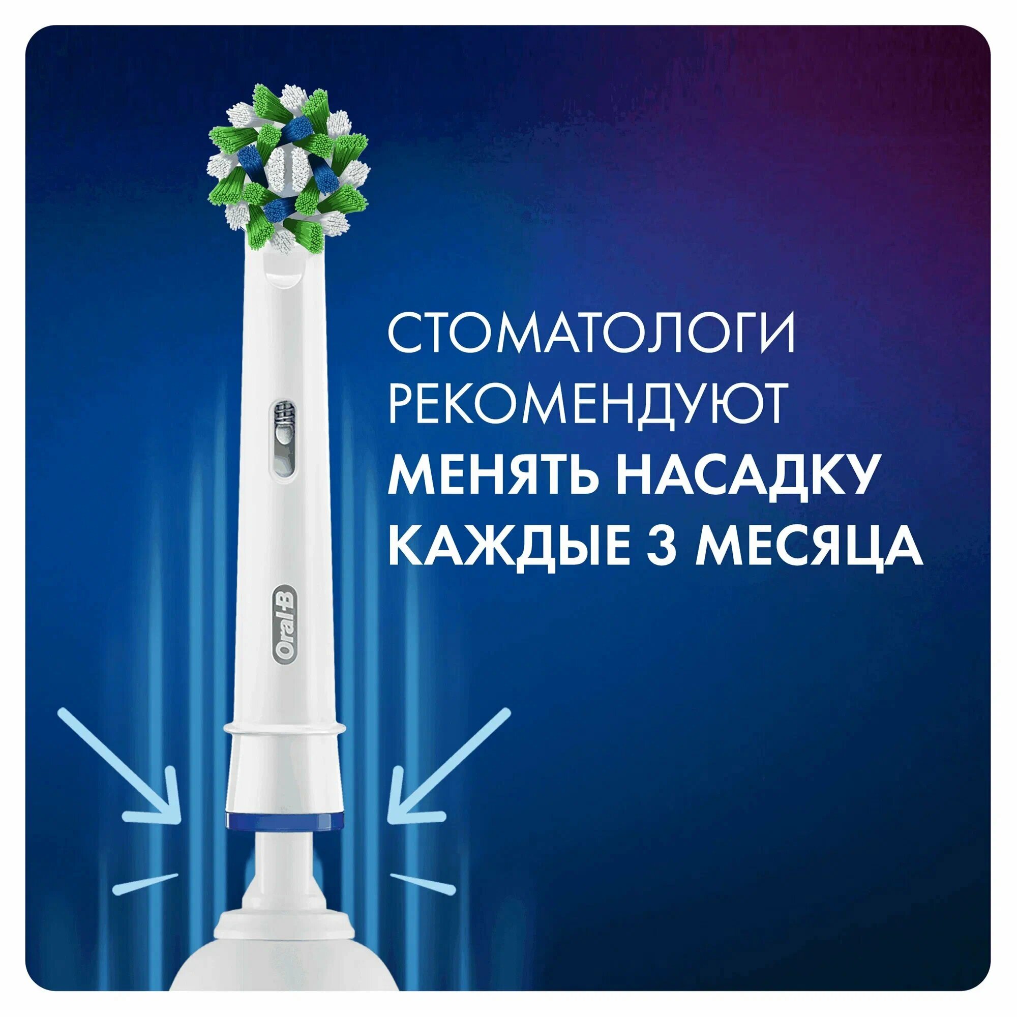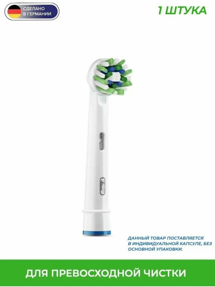 Особенности - Насадка Braun Oral-B Cross Action для электрических зубных щеток предназначена для чистки межзубных промежутков и охватывает большую поверхность зубов по сравнению с обыкновенной зубной щеткой - Щетинки, расположенные под определенным углом, обеспечивают превосходную чистку полости рта - Разная длина щетинок позволяет добраться до труднодоступных участков и удалить больше зубного налета, чем при использовании обыкновенной зубной щетки - Рекомендуется менять зубную щетку каждые 3-4 месяца.