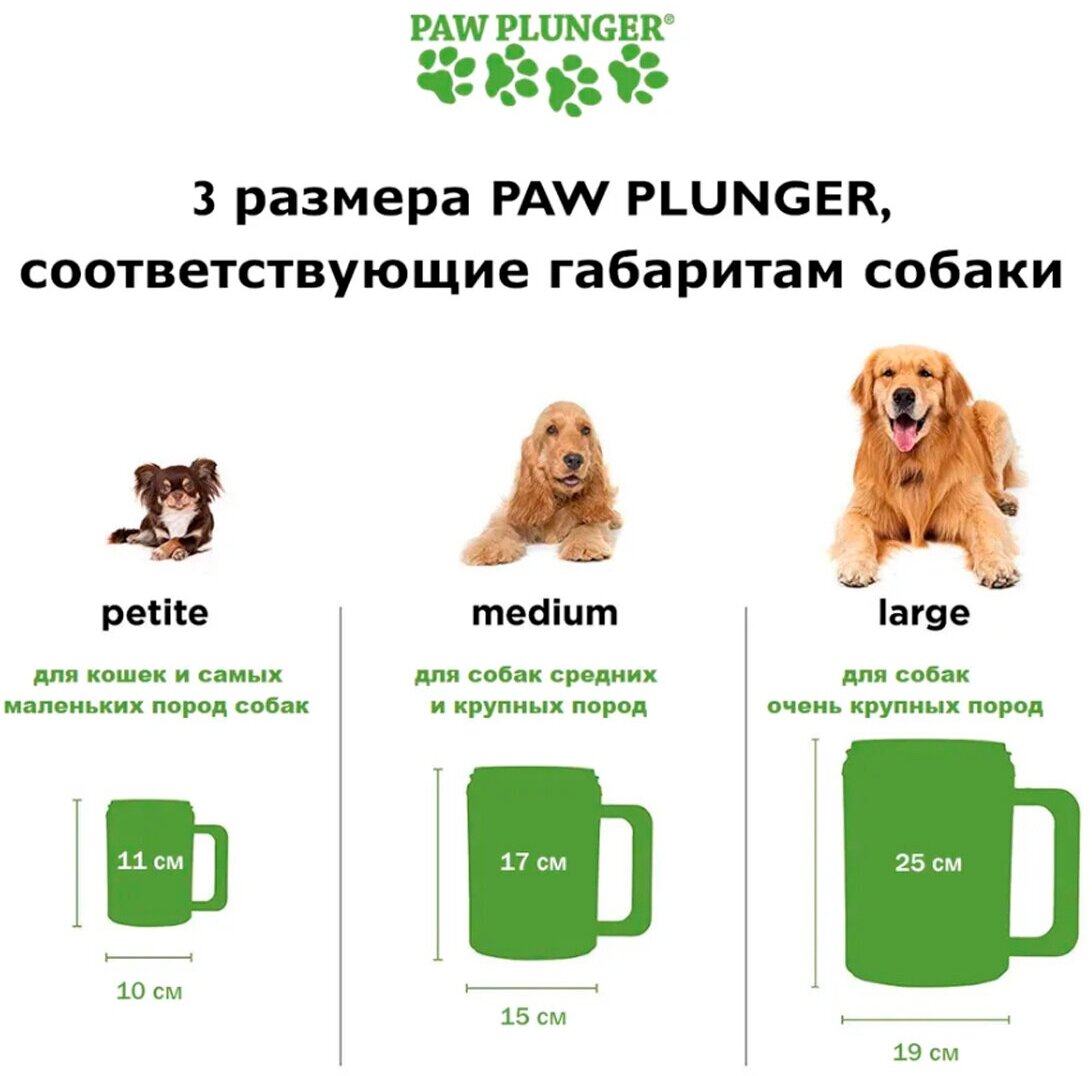 Большая лапомойка PAW PLUNGER PAW355 черного цвета – особое устройство для очистки лап четвероногого любимца.Свойства и принцип действияУстройство имеет вид большой чашки с эргономичной рукояткой. Внутри него по кругу расположены длинные щетинки особой мягкости, назначение которых состоит в бережном очищении лапок питомца от песка, пыли и прочих загрязнений.Эксплуатация приспособления не составит труда и не потребует долгих уговоров. Необходимо всего лишь просунуть лапу собаки в отверстие чаши, предварительно наполненной до половины водой, и сделать несколько макающих движений. По окончании процедуры конечность протирают мягкой тканью.ДостоинстваЛапомойка имеет ряд преимуществ, среди них:простота в использовании, не требующая похода в ванную;быстрота в очистке, для чего требуется всего пара минут;возможность ежедневного использования;массирование лап во время процедуры, что улучшает их чувствительность и кровоснабжение;возможность использования специальных средств для мытья;немаркий цвет и качественные материалы гарантируют комфортное использование.Используя устройство, владелец всегда будет иметь опрятную собаку и чистый пол.