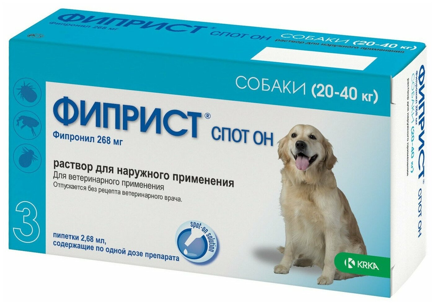 Фиприст Спот Он для собак 20-40 кг 268мг 3 пипетки KRKA