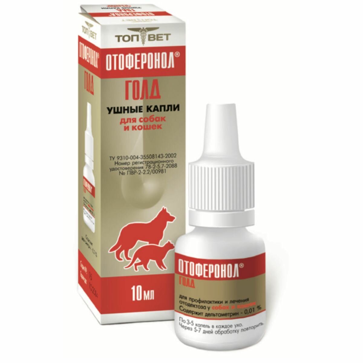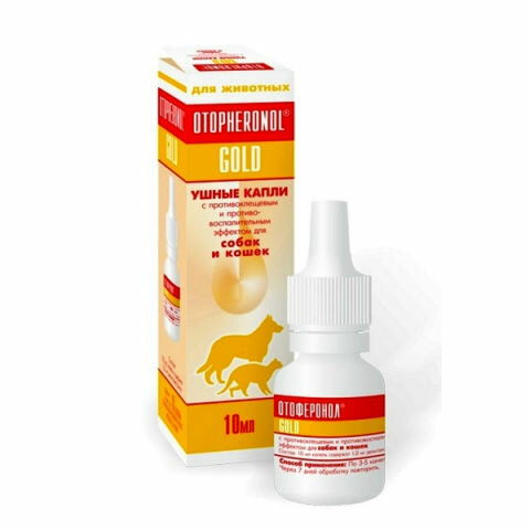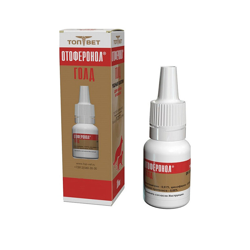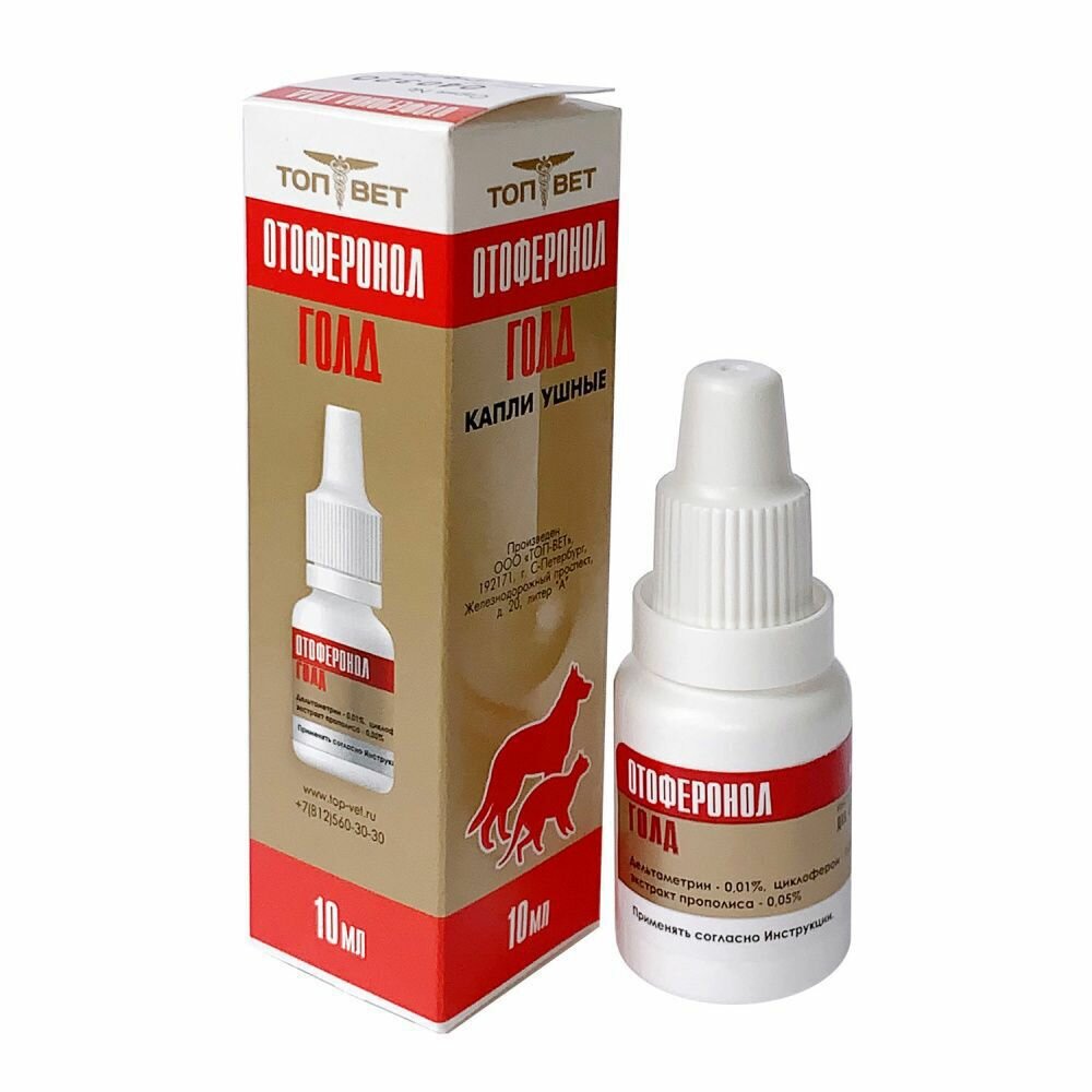 Капли Отоферонол голд для ушей 10 мл ЗАО ТОП-ВЕТ быстро и качественно снимают воспалительные процессы, понижают болевые ощущения, регенерируют эпидермис. Применяются в профилактических и лечебных целях для домашних питомцев при отодектозе. Эффективно борются с вредными раздражителями в виде микробов и бактерий. Капли протестированы и одобрены ветеринарами страны.