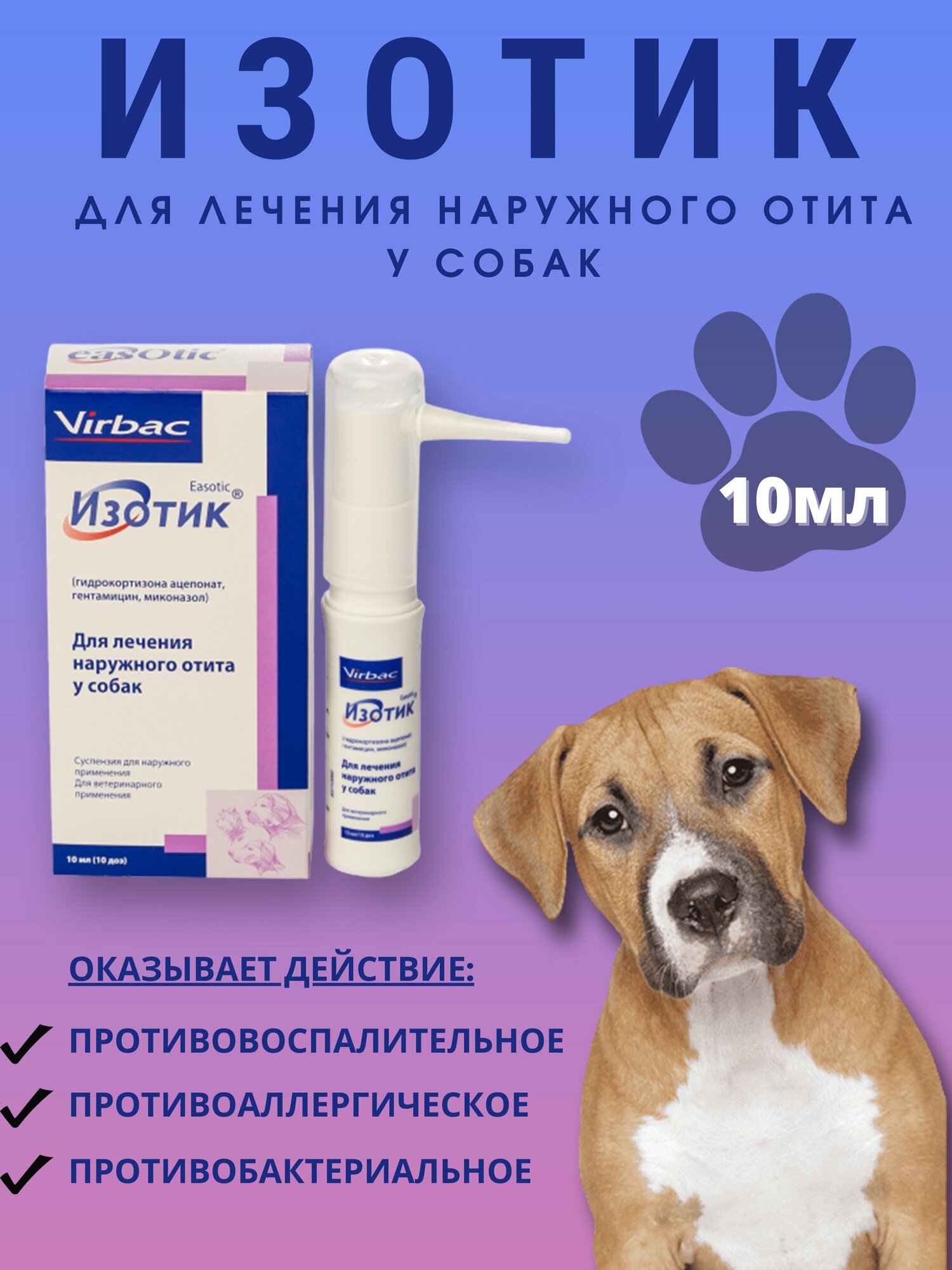 Изотик противомикробный/грибковый 10мл VIRBAC