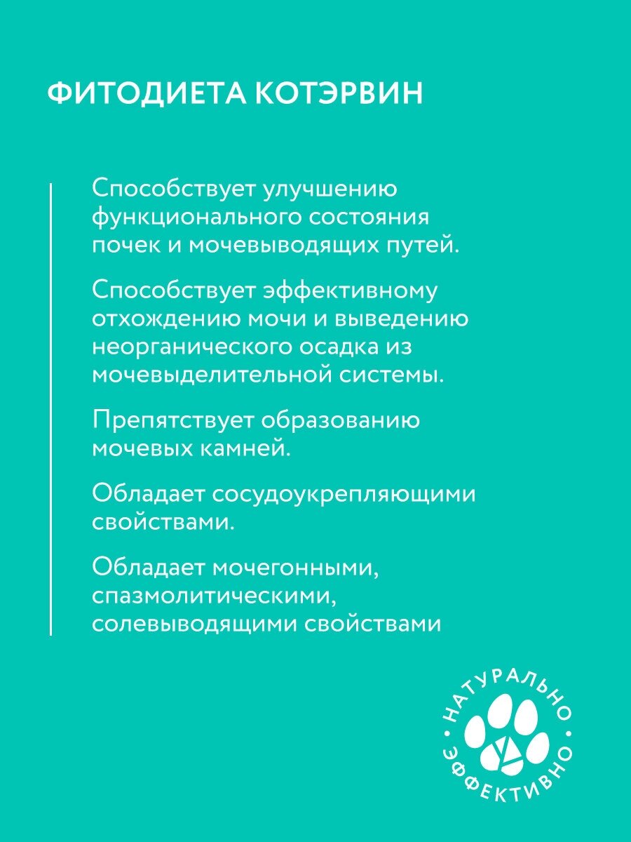 ФИТОДИЕТА КОТЭРВИН (FITODIETA KOTERVIN) – кормовая добавка для поддержания работы мочевыделительной системы у кошек и собак.