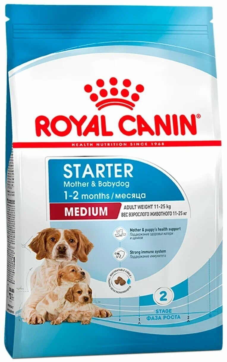 Сервис сравнения цен СкидкаГИД предлагает сравнить цены на товар «Size Medium Starter для щенков средних пород до 2х мес. беременных и кормящих сук сух. 4кг ROYAL CANIN»