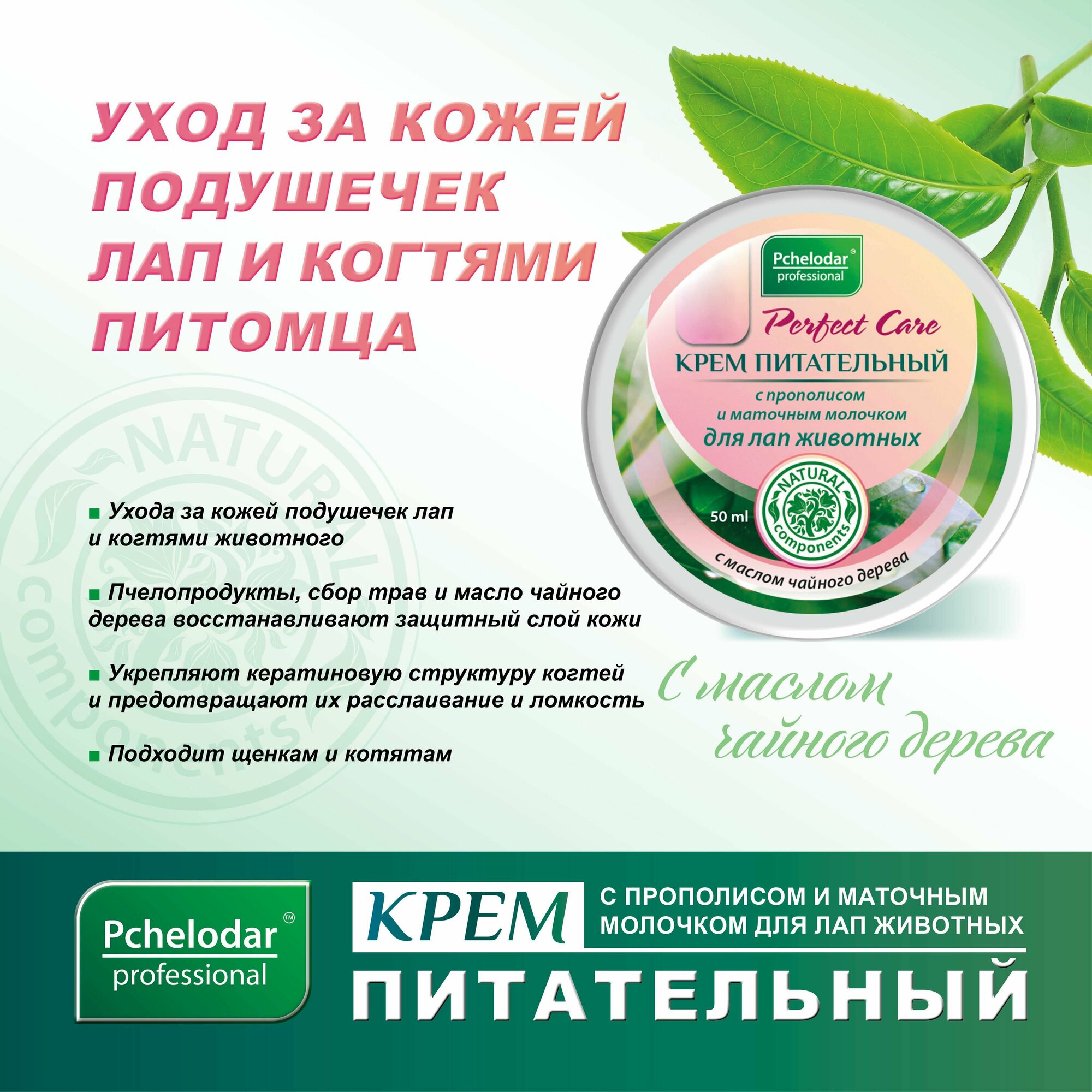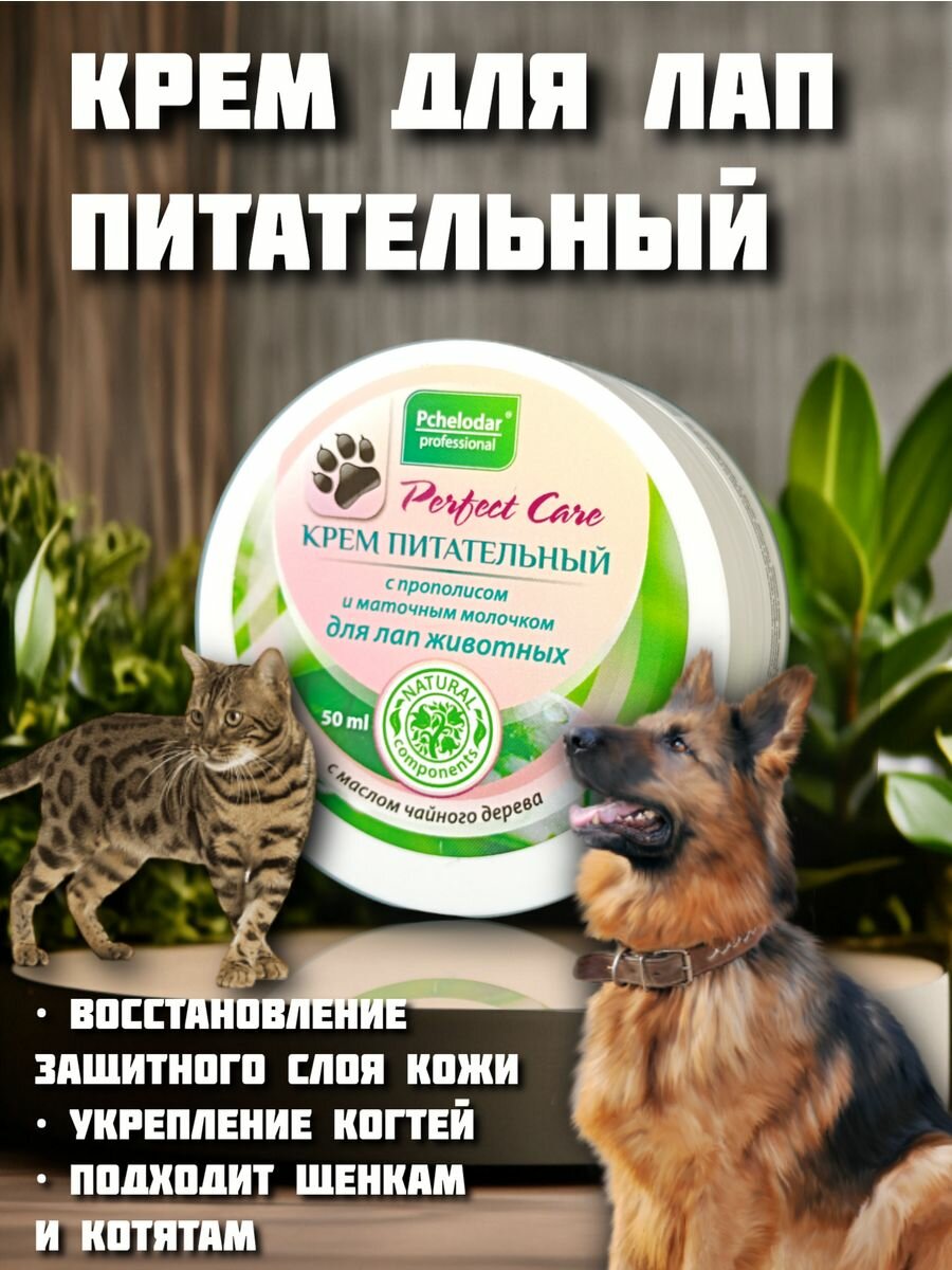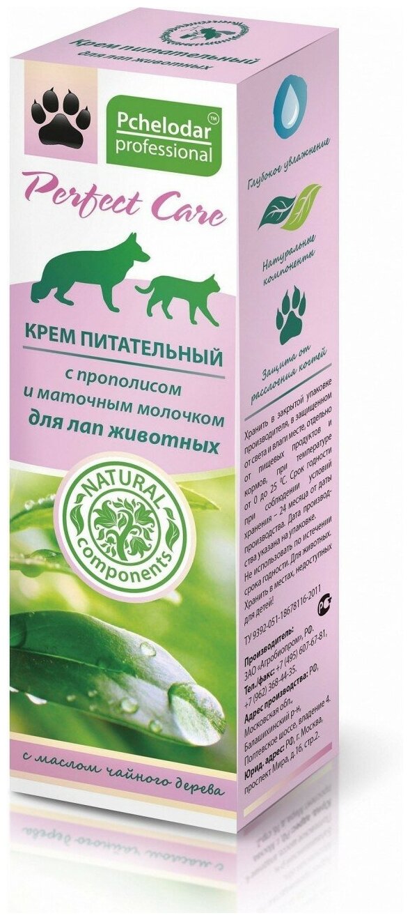 Крем питательный из серии «Пчелодар» предназначен для постоянного ухода за кожей подушечек лап и когтями животного. Пчелопродукты, сбор трав и масло чайного дерева восстанавливают защитный слой кожи, укрепляют кератиновую структуру когтей и предотвращают их расслаивание и ломкость. Подходит щенкам и котятам.