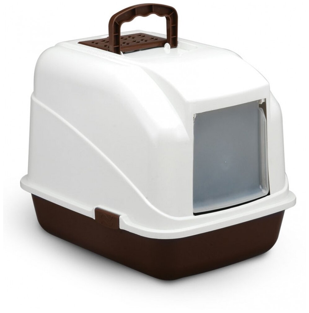 Gamma Туалет для кошекТуалет LB04 для кошек закрытый (совок в комплекте), кофейный, 480*400*410ммТуалет-бокс – это не просто стильный, но и функциональный аксессуар для владельцев пушистых питомцев. Такой туалет прекрасно удерживает запах благодаря сменному угольному фильтру, а закрывающаяся дверца предотвращает рассыпание наполнителя за пределы лотка. Туалет изготовлен из износостойкого пластика и легко моется под струей воды, а складная ручка удобна для переноски изделия. Цвет поддона: кофейный. Цвет бокса: белый. Размер туалета: 480*400*410мм. Размер совка 210*85*25мм.