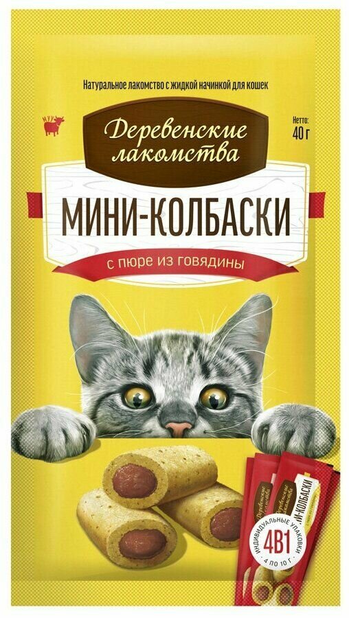 Мини-колбаски с пюре из говядины 4х10г ДЕРЕВЕНСКИЕ ЛАКОМСТВА