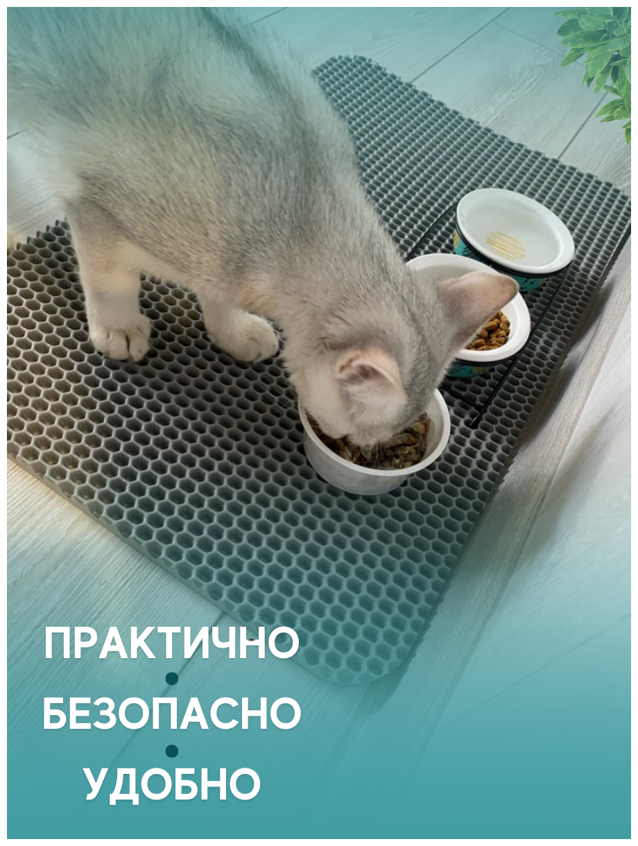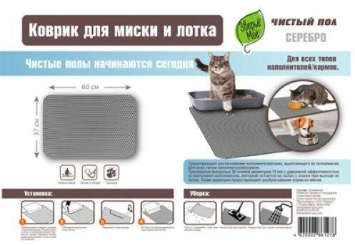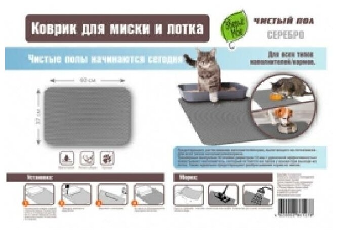 Уникальная новинка - коврик для лотков и мисок Зверье Мое " Чистый пол". Чистые полы начинаются сегодня! Устали от того, что наполнитель/корм постоянно вылетает из лотка/миски и растаскивается по дому? Мы нашли решение - универсальные чудо-коврики Зверье Мое для чистоты в доме, где есть кошки и собаки. Предотвращают растаскивание наполнителя, вылетающего из лотка/миски. Для всех типов наполнителей/кормов. Трехмерные выпуклые 3D ячейки диаметром 12 мм с удвоенной эффективностью захватывают наполнитель, который остается на лапах у кошки при выходе из лотка. Также идеально подходит для мисок с кормом. Удобная установка, подходящая для всех типов лотков/мисок. Суперлегкая уборка: Просто стряхните, очистите пылесосом или смойте. Коврик быстро сохнет, не впитывает запахи и воду. Стоит попробовать прямо сейчас.