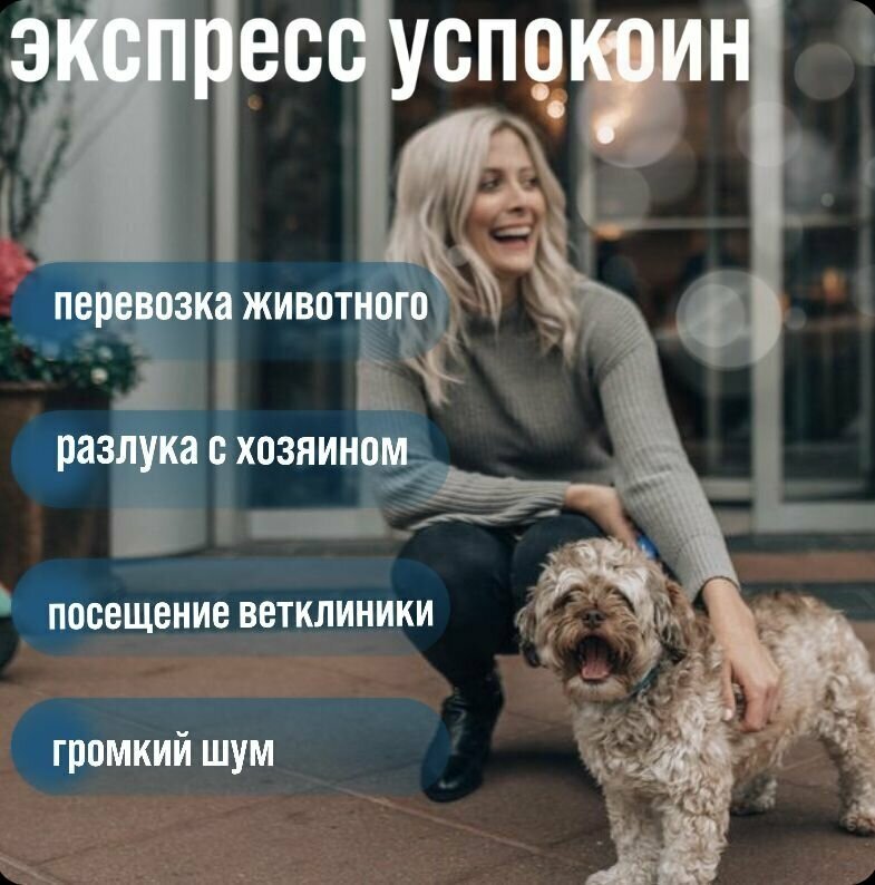 Экспресс Успокоин – единственный на российском рынке успокоительный препарат для быстрого и эффективного решения поведенческих проблем у собак в стрессовых ситуациях: