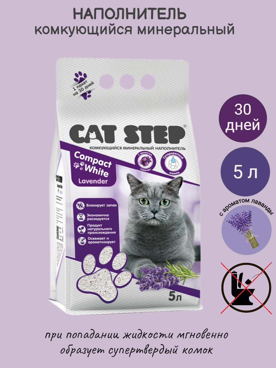 - Комкующийся минеральный наполнитель CAT STEP Compact White Lavender
