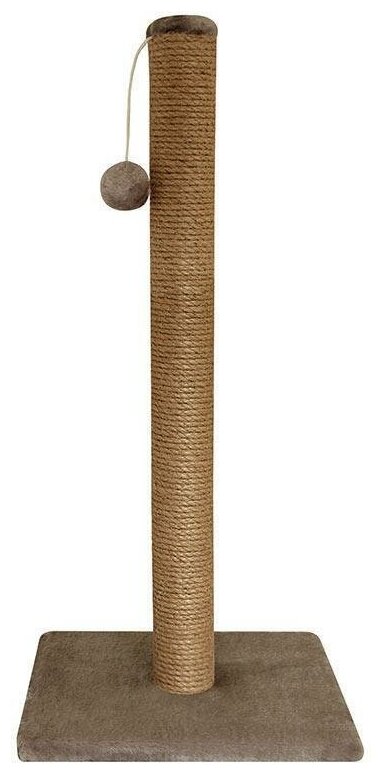 Эта универсальная когтеточка представляет собой стойку-столбик с плотной джутовой обмоткой. Вертикальная когтеточка расположена на устойчивой и просторной платформе с обивкой из однотонного искусственного меха, где ваш питомец сможет с комфортом разместиться, а мягкая игрушка на веревочке развлечет пушистого любимца в минуты бодрого настроения. Данная стойка станет не просто необходимым аксессуаром кошки для безопасного стачивания когтей, но и станет её любимым местом времяпрепровождения.
