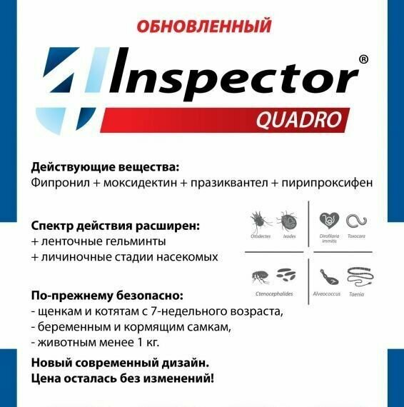 Сервис сравнения цен СкидкаГИД предлагает сравнить цены на товар «Quadro Tabs от внешних и внутренних паразитов 2-8кг Inspector (размер: 4 таб.)»