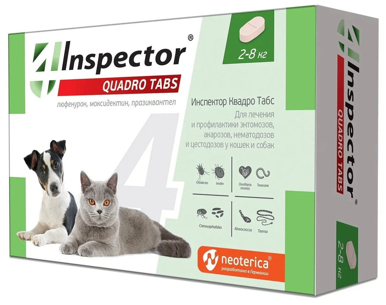 Quadro Tabs от внешних и внутренних паразитов 2-8кг Inspector (размер: 4 таб.)