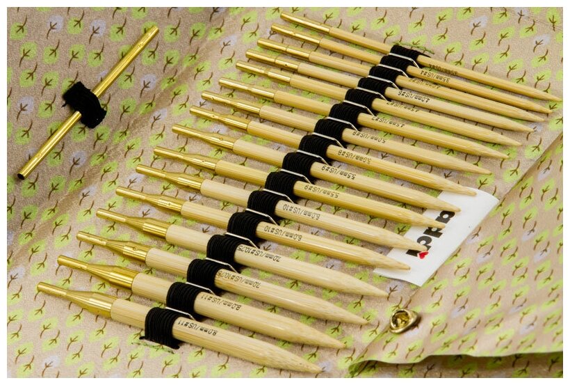 | В набор входит | 8 пар бамбуковых спиц, 3 вида лески, соединительный элемент, чехол, позолоченный кулон addi в виде сердца |