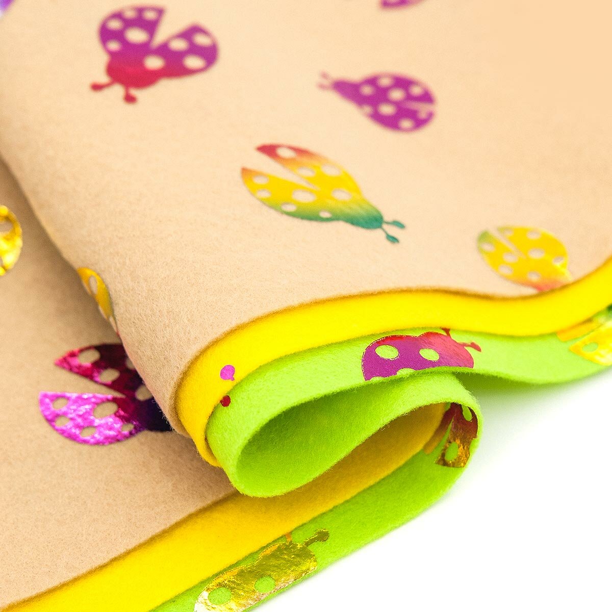 Фетр толщиной 1 мм, с рисунком 'Божьи коровки'. Материал для шитья игрушек, обложек на паспорт, украшений и т.д.