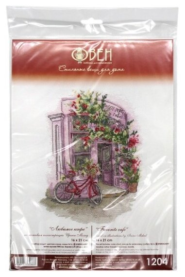 Набор для вышивания известного российского производителя Овен. В состав набора для вышивания Овен обычно входят: канва Aida с нанесенным фоном 100% хлопок, нитки мулине 100% хлопок, игла, цветная схема, инструкция на русском языке. Компания «Овен» вышла на рынок наборов для вышивания в 2002 году. Благодаря простым, оригинальным и качественно сделанным наборам, выпускающимся под брендом «Стильные вещи для дома», компания уверенно заняла свою нишу на рынке рукоделия.