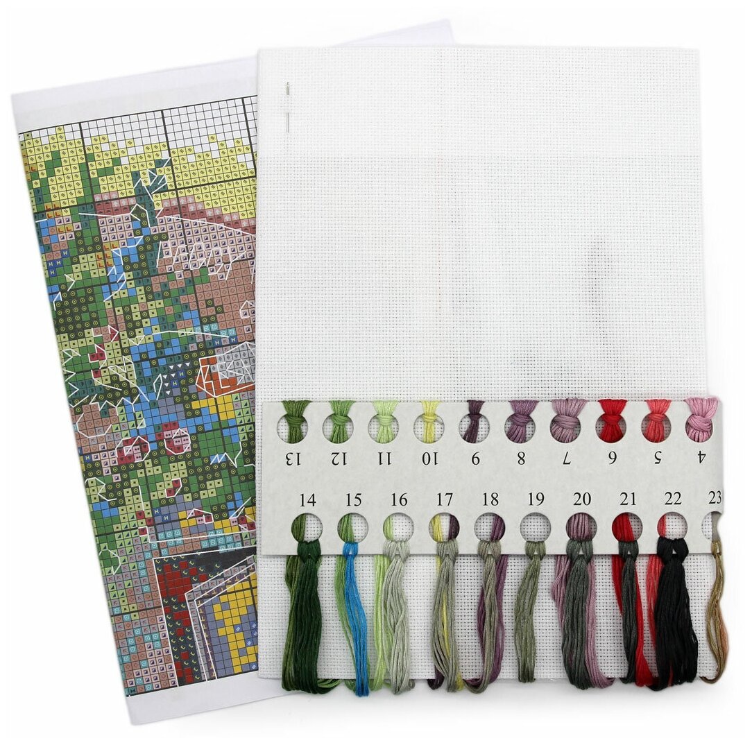 | В набор входит | хлопковая канва Aida Zweigart 16 ct, хлопковое мулине (25 цв.), цветная символьная схема, игла, инструкция по вышиванию. |