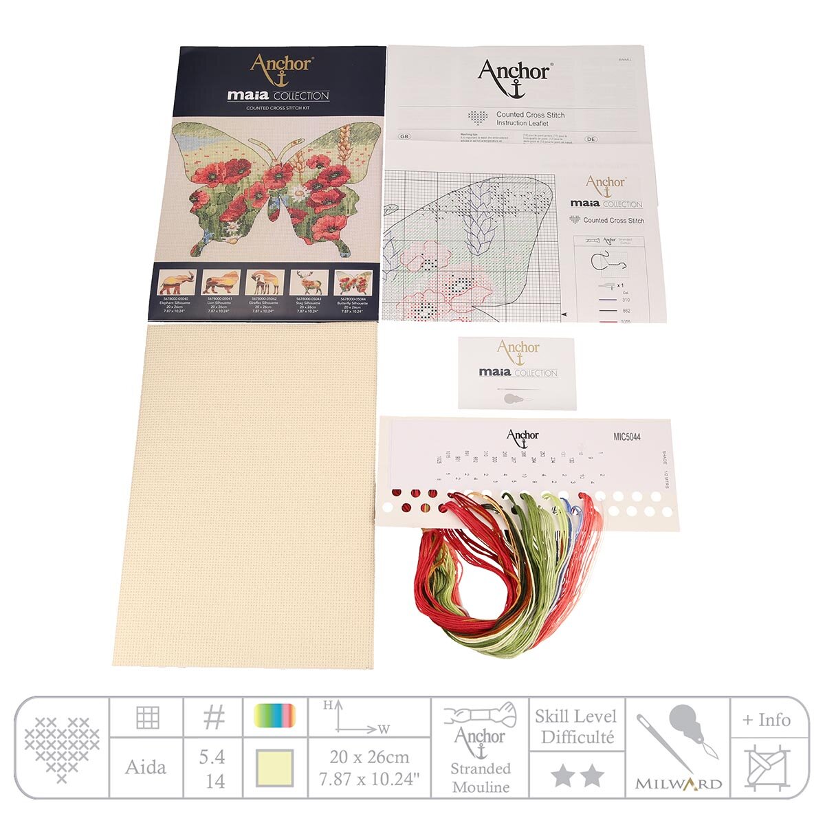 В наборе: канва Aida 14 кремовая, хлопковые мулине Anchor с органайзером, нитковдеватель, игла, цветная символьная схема, инструкция.