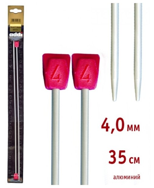 Солидные и легкие прямые спицы из алюминия addi обладают прекрасными тактильными качествами и благородным серебристо-матовым цветом. На кончиках в качестве стопперов есть фирменный логотип addi в виде сердечка, что придает спицам уникальный вид. На саму спицу, как и на других артикулах, нанесен размер, длинна и знаменитое " Made in Germany".