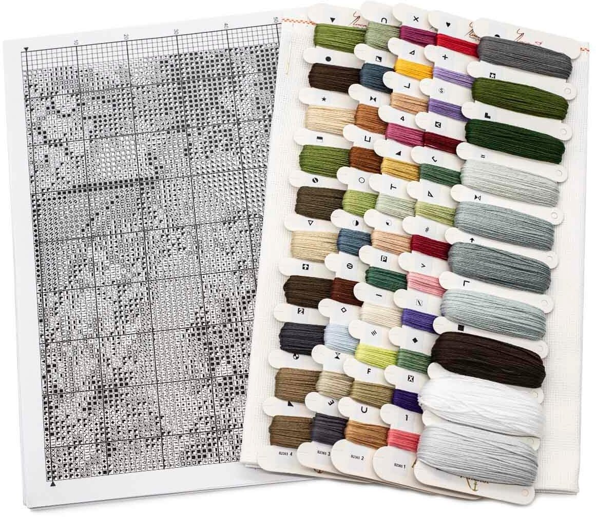 | В набор входит | канва Aida 18 ct белого цвета, хлопковое мулине Anchor, черно-белая символьная схема, игла, инструкция по вышиванию |