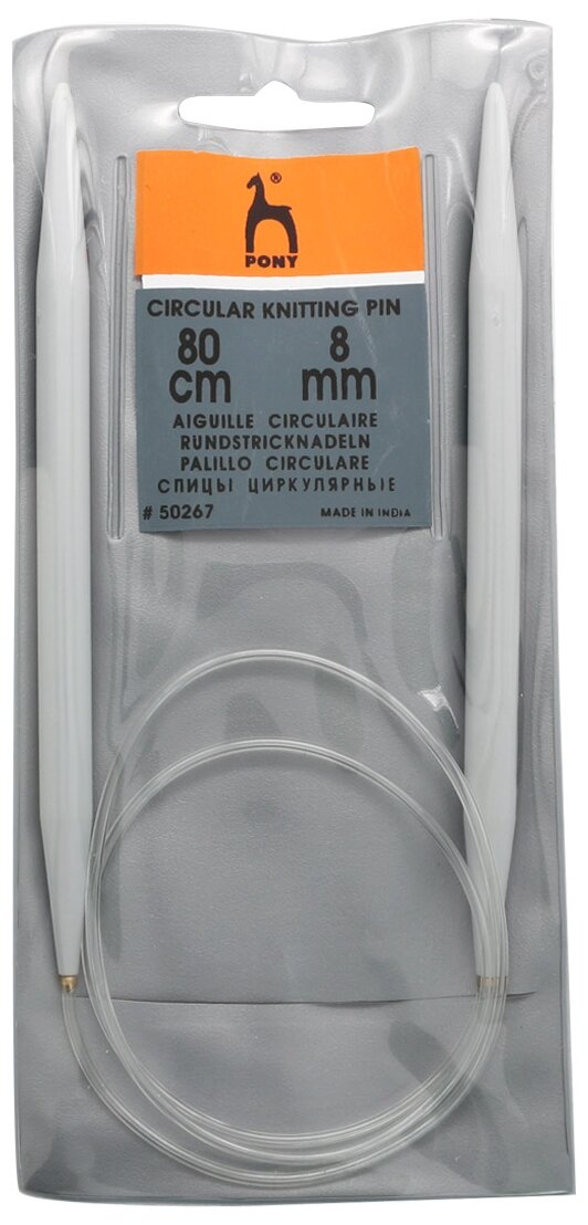 Удобные круговые спицы Pony с гибким тросиком. Слегка искривлены на переходе к тросику для удобного перекидывания и снятия петель.Спицы изготовлены из легкого пластика по оригинальной технологии, поэтому они отличаются прочностью, не гнутся и очень гладкие, при этом светлая шерстяная пряжа от соприкосновения с ними не темнеет.Циркулярные спицы незаменимы при бесшовном вязании носков, рукавов, высоких воротников, манжет, манишек и других вещей в круговой технике.Обратите внимание: на данных спицах не рекомендуется вязать плотное полотно, а также работать с трикотажной пряжей.PONY – это всемирно известный индийский бренд, продукция которого востребована на всех континентах мира и славится своим высоким качеством и разнообразным ассортиментом товаров.Спицы - это практичный подарок для вязальщицы, она по достоинству оценит их безупречное качество. Желаем вам ровных петелек! Общая длина: 80 см
