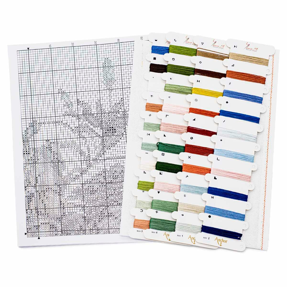 | В набор входит | канва Belana Zweigart 20 ct, хлопковое мулине Anchor (40 цв.), разобранное на бумажном органайзере, черно-белая символьная схема, игла, инструкция по вышиванию. |