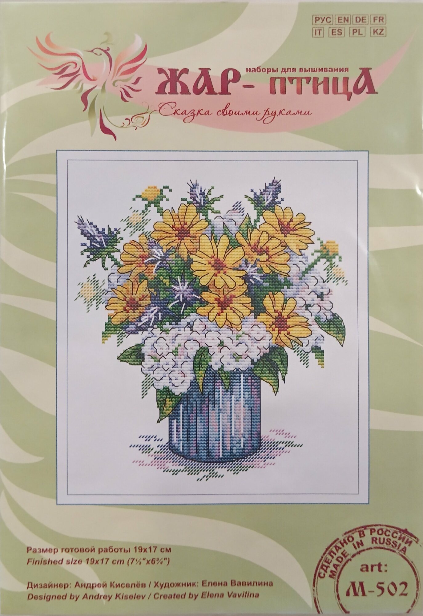 Больше товаров на нашем сайте: Отправка по всей РоссииСостав: канва Аида №14, нитки мулине 23 цветов, разобранные органайзере, игла, руководство по вышиванию. Размер:19*17 Полное описаниеНабор для вышивания крестиком на канве от торговой марки «Жар-Птица» М-502 «Мелодия аромата».В состав набора входит все необходимое для работы: канва 14 каунта, нитки мулине, разобранные на органайзере, схема и подробное руководство по вышиванию на 8-и языках. Важно заметить, что ключ переведен на английский язык.Наборы для вышивания от «Жар-Птицы» — это милые сюжеты, которые идеально подойдут для прикладного творчества: небольшие вышивки удобно оформлять на ежедневниках, сумках, подушках или одежде.Обратите внимание, серия «М» имеет два приятных преимущества. Во-первых, цена наборов минимальная, а качество остаётся на прежнем уровне, что приятно радует. Во-вторых, на волне популяризации Российских товаров мы снабдили каждый набор из серии «М» исключительно российскими комплектующими. В каждый набор мы положили: буклет с подробной схемой и инструкцией для вышивания, канву Аида и прочные, красочные нитки мулине. Всё, что необходимо для комфортного вышивания!