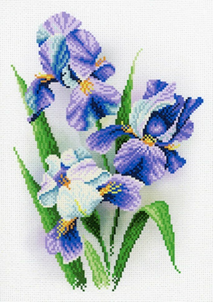 Букет ирисов Рисунок на канве 30х40см 28х19(30х40) МП-Студия СК-016 28х19(30х40) МП-Студия СК-016 Состав: Канва Аида 14 с нанесенным рисунком-схемой, количество цветов мулине — 16 (нитки приобретаются отдельно!), частичная зашивка.