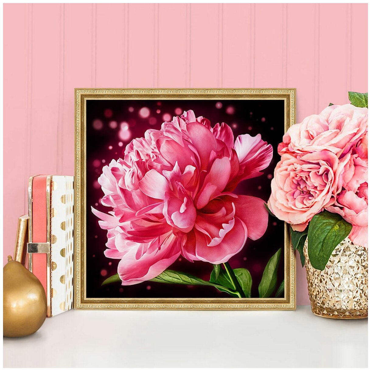Алмазная вышивка Сверкающий пион (АЖ-1784) - картина стразами Алмазная живопись (размер: 25х25 см)