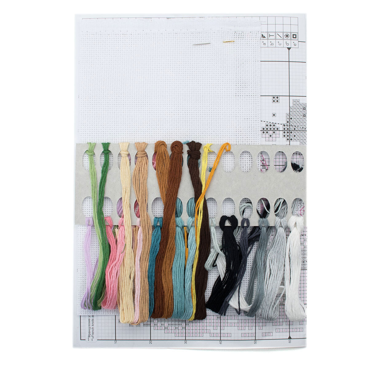 В наборе: канва Aida 14 ct, нитки мулине, игла, схема и руководство по вышиванию.