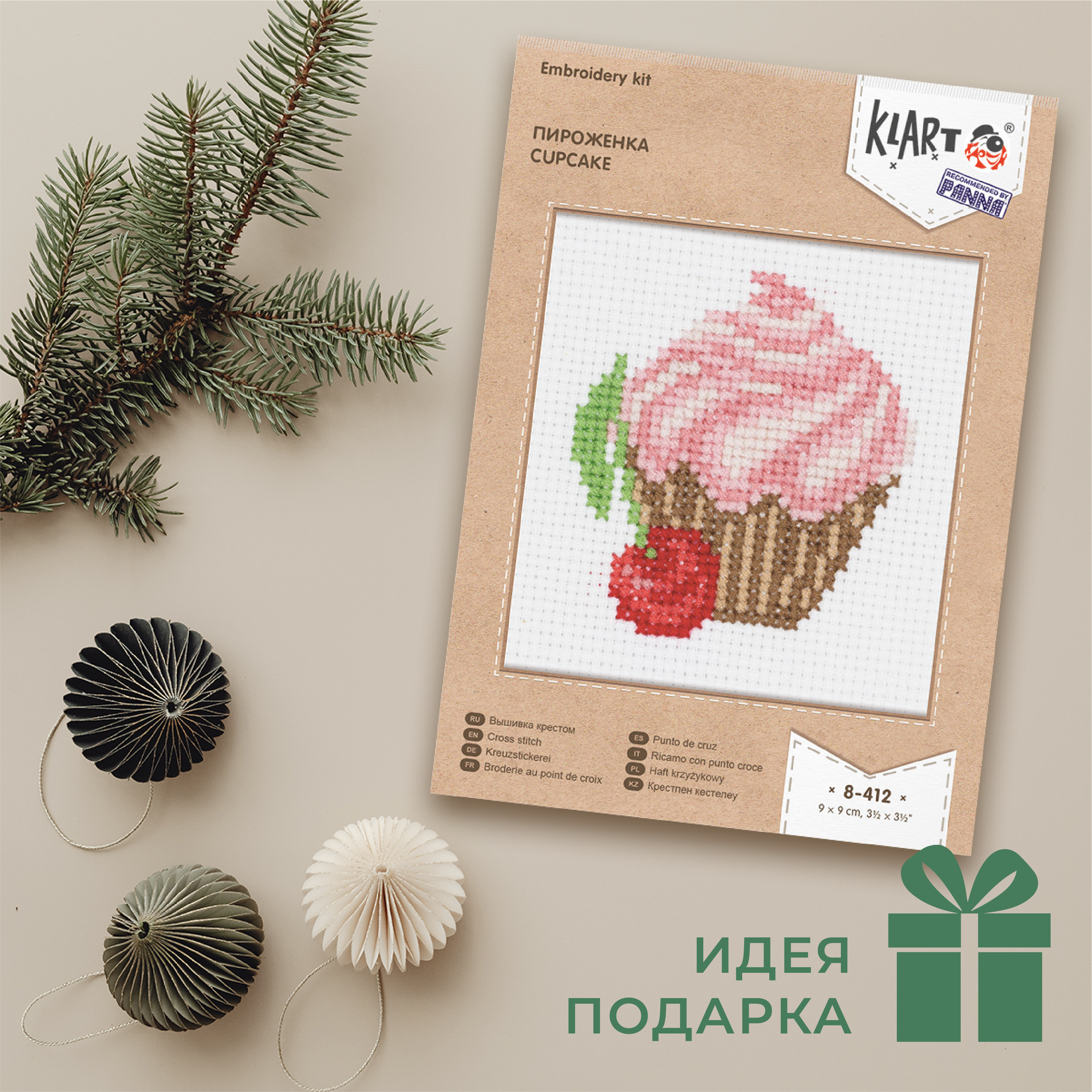 . Klart набор для вышивания 8-412 "Пироженка " В набор для вышивания Klartвходят: канва Aida №14 "Gamma", хлопчатобумажные нитки мулине "Gamma", игла "Gamma", цветная схема, инструкция по вышиванию.