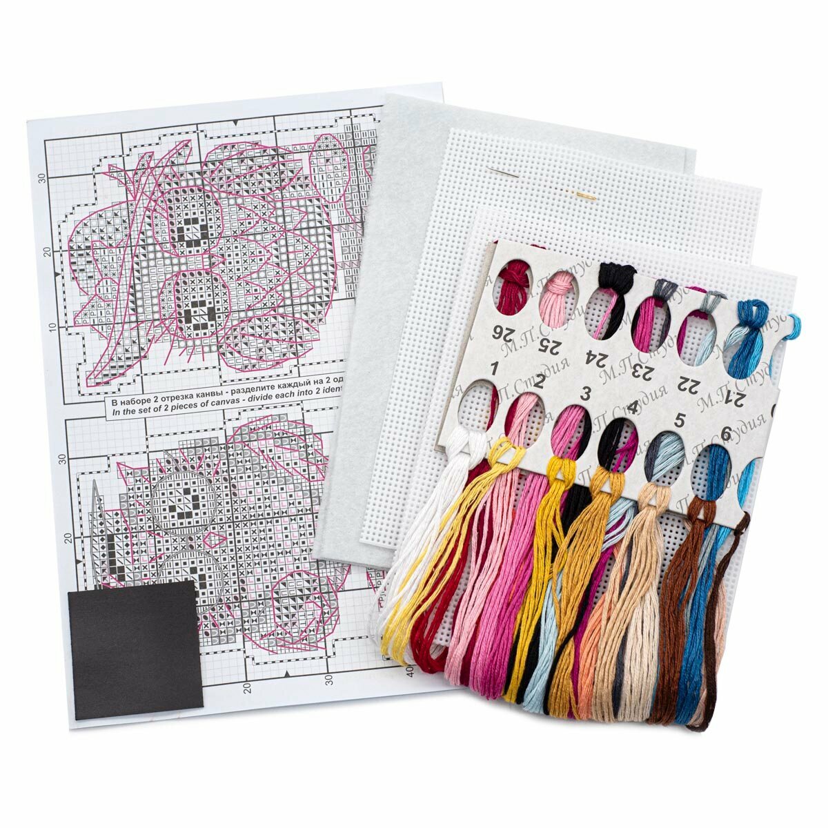| В набор входит | пластиковая канва, нитки мулине 24 цветов, фетр белого цвета, игла, магнитное полотно, схема для четырех сюжетов и руководство по вышиванию |