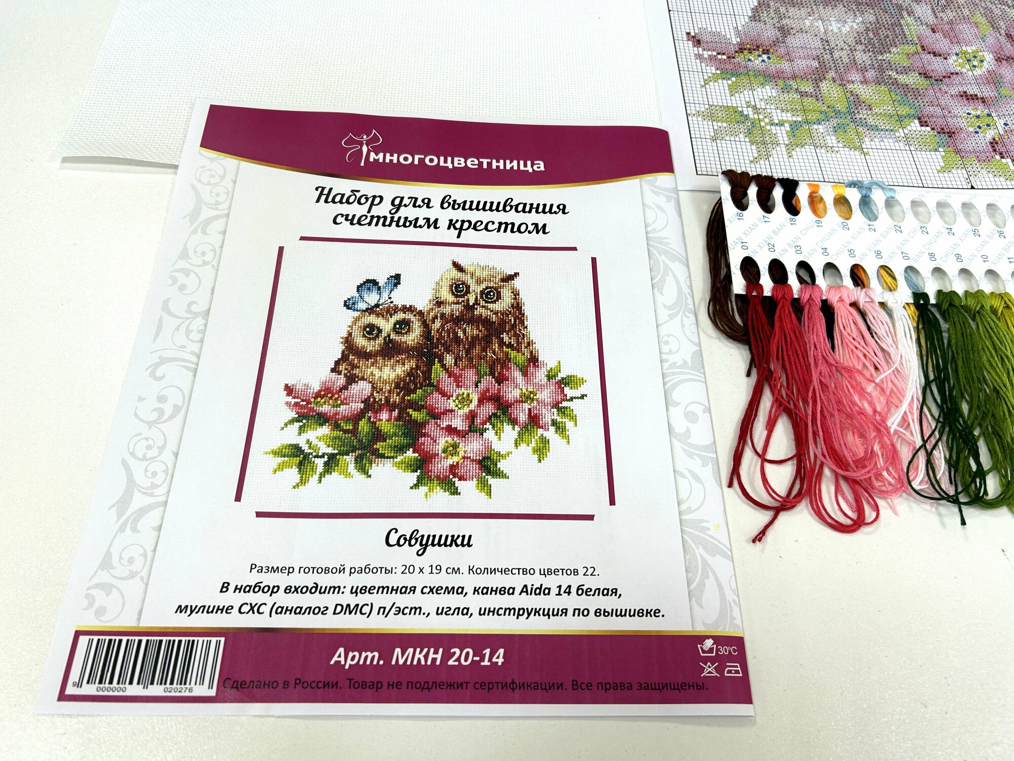 | В набор входит | канва белая Аида 14, цветная схема, мулине СХС (аналог DMC) п/э, игла, инструкция по вышивке |