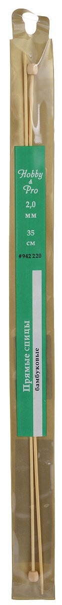 942220 Спицы прямые бамбук 35см 20мм Hobby&Pro
