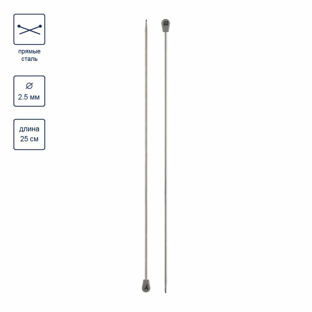 Спицами прямыми "Gamma" длиной 25 см удобно вязать изделия средних и небольших размеров: бейки, шарфы, воротники, игрушки, детскую одежду. Сделаны из высокопрочной стали. Марка стали AISI 201, обладает высокой прочностью. При изготовлении AISI 201 применяются новейшие технологии, благодаря чему удается получить сбалансированный химический состав. Он в свою очередь повышает стойкость к коррозии. Спицы прочные, легкие, гладкие, удобные в использовании. Кончики спиц закругленные, ровные. Комплект спиц упакован в чехол голубого цвета с этикеткой и штрих-кодом.Диаметр: 2,5 мм.