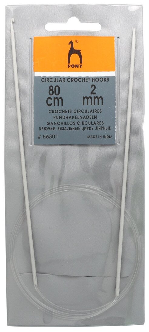 Легкие и прочные крючки для вязания Pony порадуют рукодельниц своим качеством, оригинальным дизайном и удобством в применении. Крючки ориентированы на удобство при работе в тунисской (афганской) технике вязания. Два алюминиевых крючка с аккуратными головками классической формы объединены между собой гибким нейлоновым тросиком, как круговые спицы. Такая конструкция облегчает вывязывание объемных полотен с плотным узором и позволяет сократить расход пряжи. Идеально подходит для вязания различных бесшовных деталей одежды, а также носков или головных уборов. Гладкая поверхность, соприкасаясь с пряжей, не нарушает структуру нити. PONY – это всемирно известный индийский бренд продукция которого востребована на всех континентах мира и славится своим высоким качеством и разнообразным ассортиментом товаров. Качественный удобный крючок это всегда отличный подарок для вязальщицы.Длина: 80 см.Диаметр: 5,5 мм.