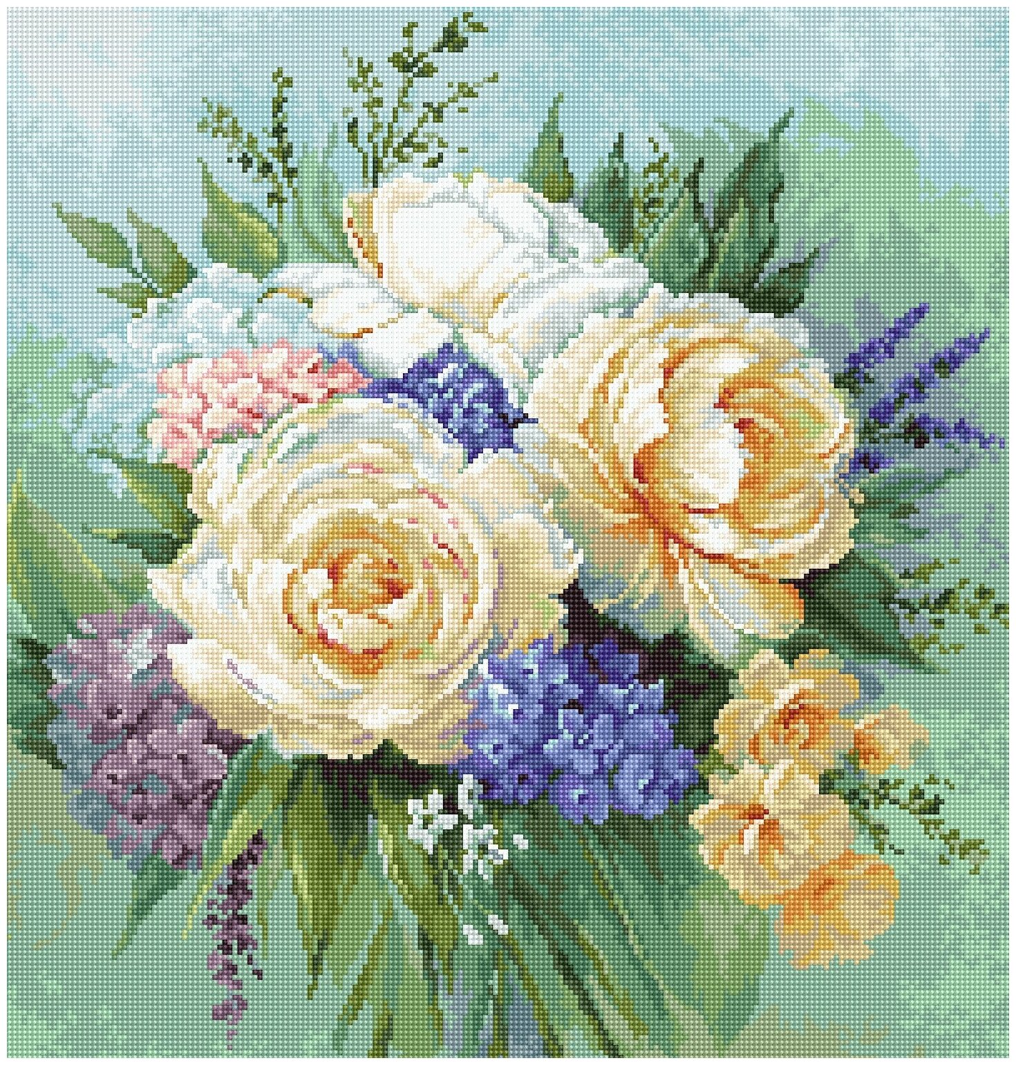 Вышивание стало вашей страстью? Тем хобби, которое позволяет успокоиться и раскрыть свой творческий потенциал? Мы поддерживаем стремление к совершенству и поэтому предлагаем широкий выбор оригинальных наборов для вышивания бренда LUCA-S, с помощью которых можно собственными руками создавать настоящие произведения искусства. G600 Цветочный букет - яркий вариант в коллекции этого известного производителя. Для воссоздания рисунка на полотне размером 32х33,5 см используется специальная техника счетный крест делающая изображение реалистичным и четким. Под зонтом и другие позиции нашего ассортимента реализуются по привлекательным ценам. Набор для вышивания содержит все нужные материалы для работы. Качественная канва и нитки делают вышитую работу эксклюзивным художественным шедевром. Правила вышивки крестом несложны, но требуют внимательности и аккуратности. В набор входит: канва, нитки, игла, цветная символьная схема, инструкция на русском языке, полная заливка.