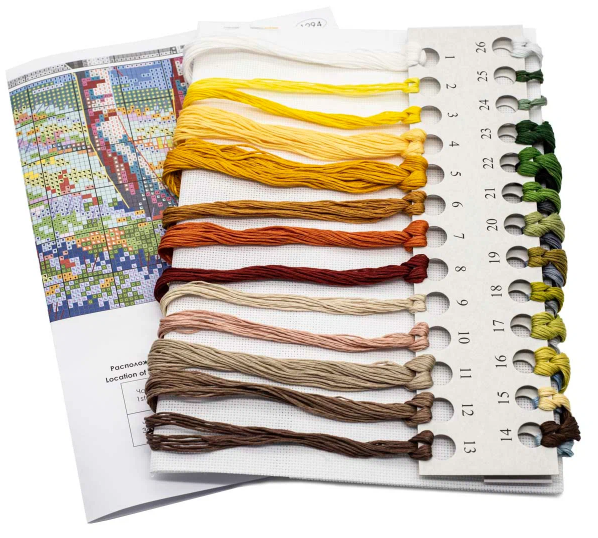 Для удобства нитки мулине разобраны на картонном органайзере. Перед началом работы рекомендуется разметить канву водорастворимым маркером.