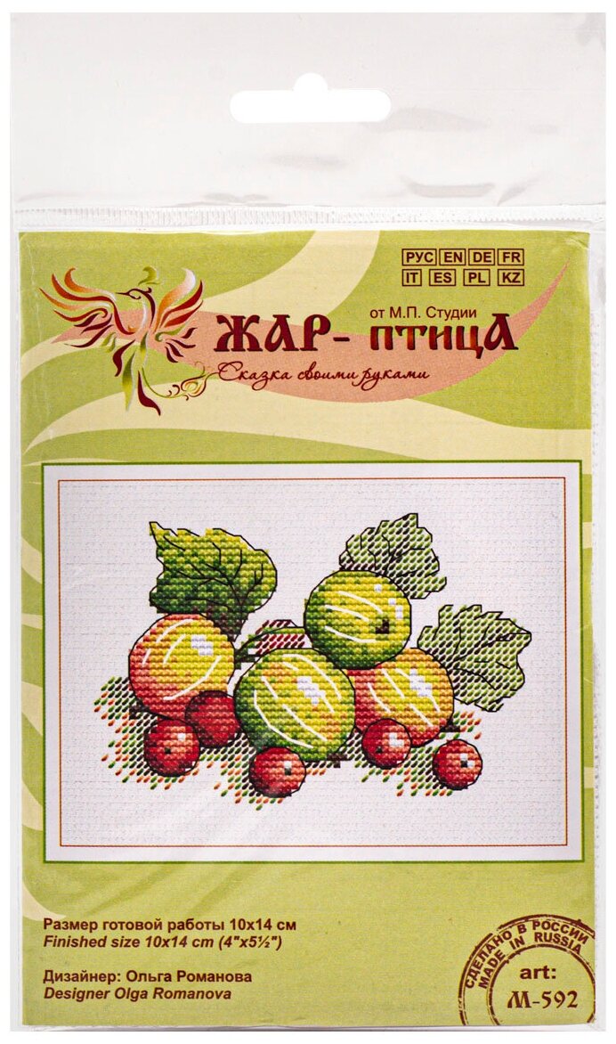Наборы для вышивания бренда 'МП Студия' – это продуманные схемы, тщательно подобранная цветовая палитра и материалы российского производства. Набор 'Душистый крыжовник' прекрасно подходит для начинающих и самых юных мастериц. Простая схема с минимальным количеством цветов и крупная канва Aida 14 – то, что гарантирует отличный результат, даже если это ваша первая вышивка. Немного аккуратности, терпения, и вскоре картина будет готова! В наборе: канва Aida 14, нитки мулине, игла, двухцветная символьная схема, подробная инструкция на 8 языках. Количество цветов: 9.