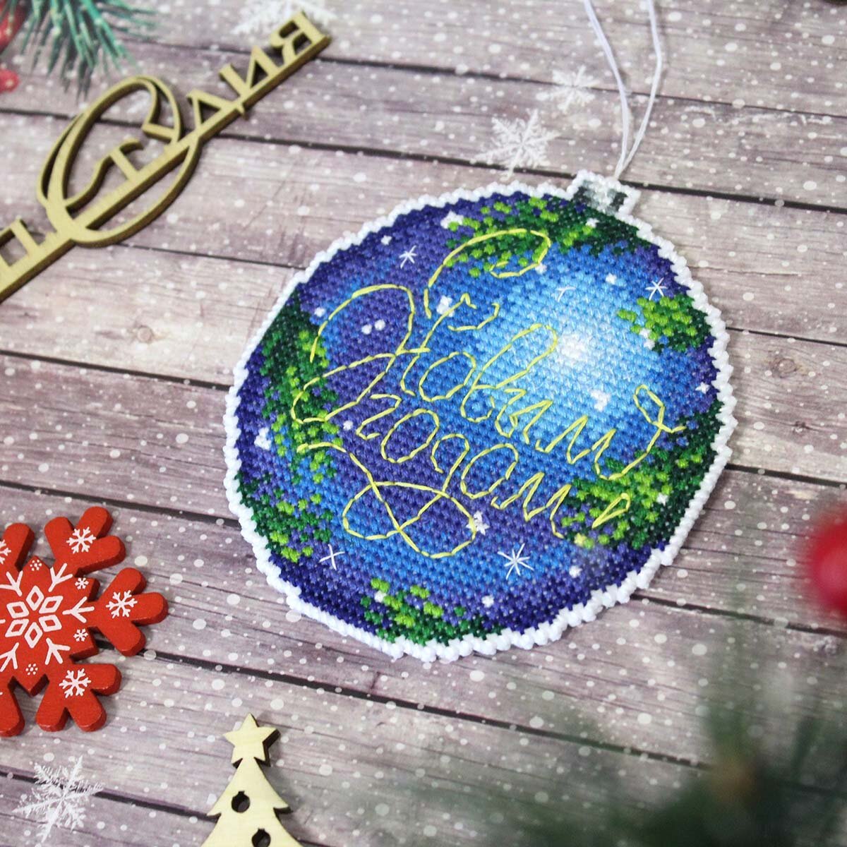 Сделайте своими руками яркую подвеску на елку 'Пора праздновать' – это увлекательно и быстро. Набор подойдет даже начинающим, достаточно проявить терпение, аккуратность и освоить простую технику 'крест'. Пяльцы или рамки не понадобятся – пластиковая канва отлично держит форму. Готовые элементы надо вырезать по контуру и соединить между собой аккуратными стежками. При желании между деталями игрушки можно вклеить или вшить ленту-подвес.