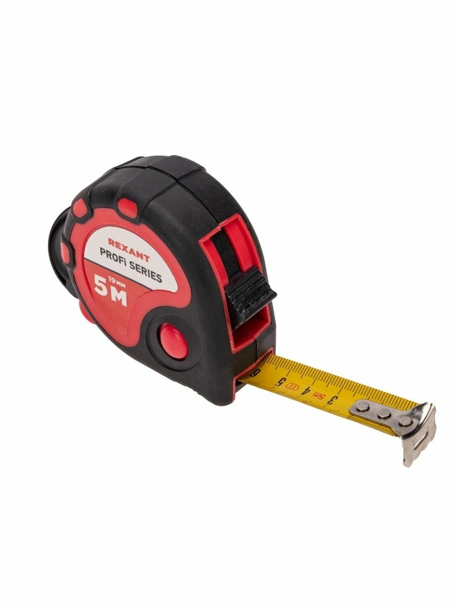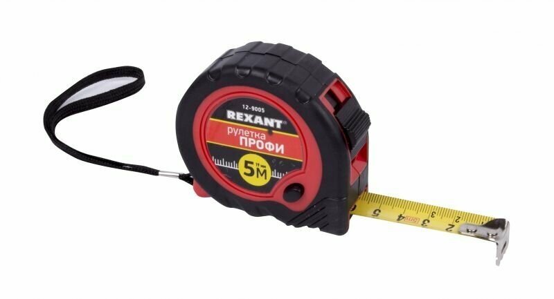 Измерительная рулетка REXANT «Профи» необходима при проведении измерительных работ в строительстве, хозяйстве, ландшафтных и геодезических исследованиях. Эргономичный прорезиненный корпус выполнен из ударопрочного пластика, не скользит в руках. Для удобства использования рулетки предусмотрены кнопки стопора и фиксации тормоза. Полотно обладает удобным зацепом с отверстием посередине. На корпусе расположена клипса-зажим для фиксации рулетки на ремне, кармане или поясной сумке. Ремешок позволяет надевать инструмент на запястье, чтобы освободить руки для работы.