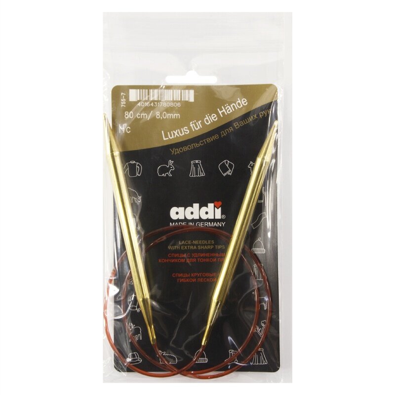 755-7/8-80 Спицыкруговыес удлиненным кончиков№8 ADDI С удлиненным кончиком