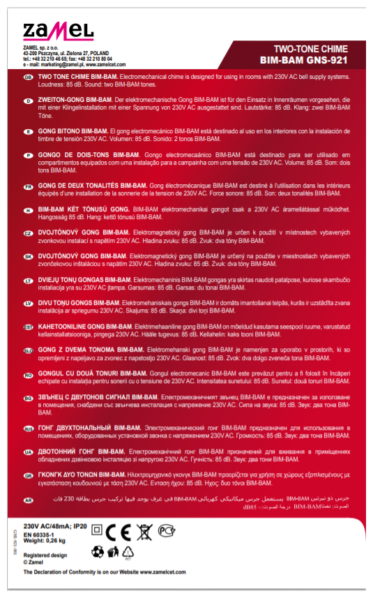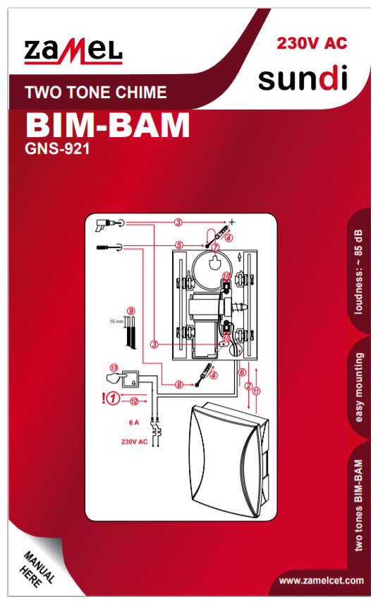 - Звонок Zamel GNS 921/A электромеханический гонг