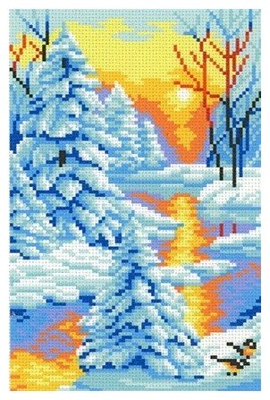 Зимний закат Рисунок на канве 30х21см 21х14(30х21) МП-Студия СК-044 21х14(30х21) МП-Студия СК-044 Состав: Канва Аида 14 с нанесенным рисунком-схемой, количество цветов мулине — 12 (нитки приобретаются отдельно!), частичная зашивка.