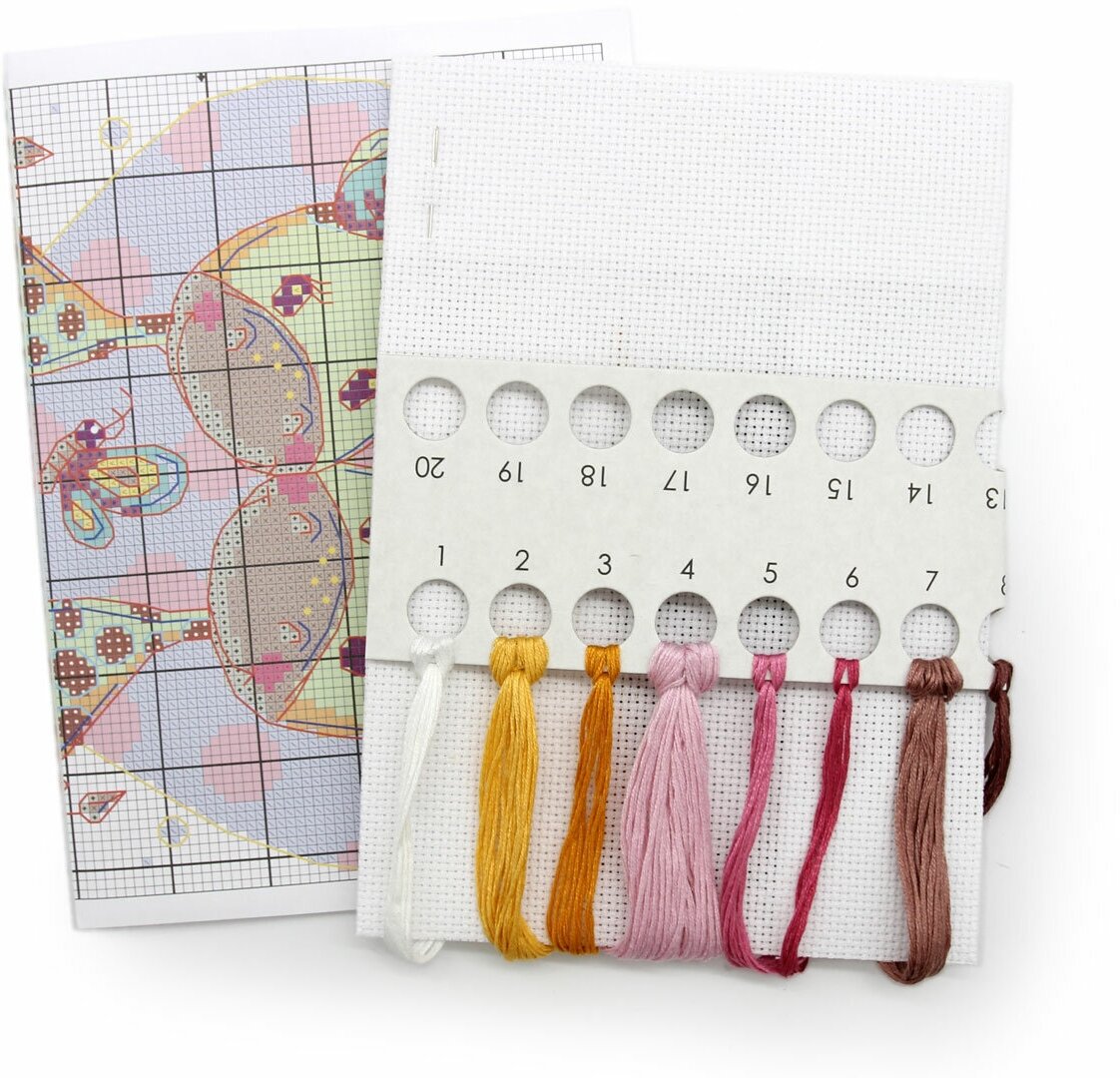 В наборе: канва Aida 14 Zweingart, хлопковое мулине (11 цветов) на органайзере, игла, цветная символьная схема, инструкция.