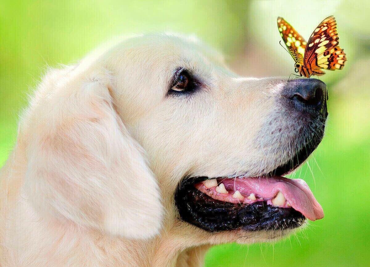 Алмазная вышивка le093 «Пёс и бабочка» Цветной (размер: 30х40 см)